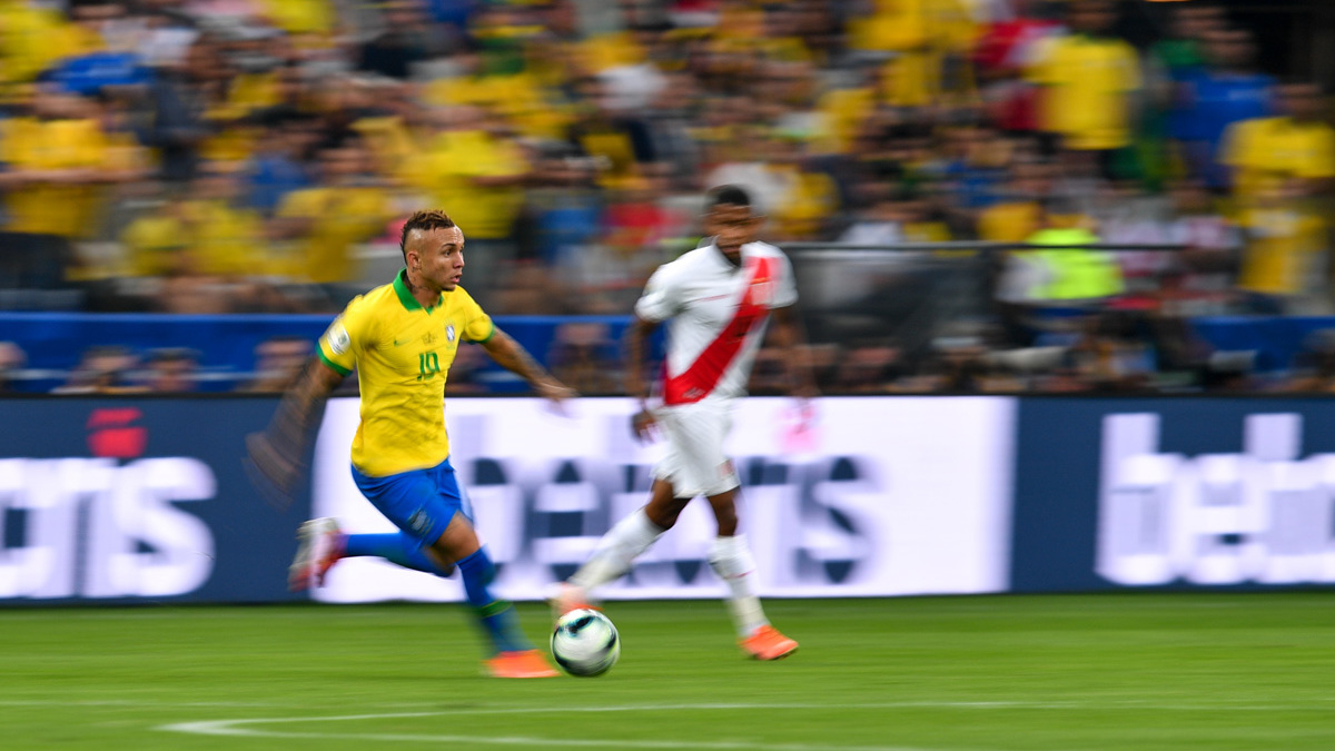 北京时间6月22日,在圣保罗市科林蒂安竞技场进行的一场美洲杯足球赛小组赛中,东道主巴西队5比0大胜秘鲁队,以A组头名身份挺进八强。秘鲁队位居第三,要与另外两个小组的第三名比较成绩之后才能决定自己的命运。