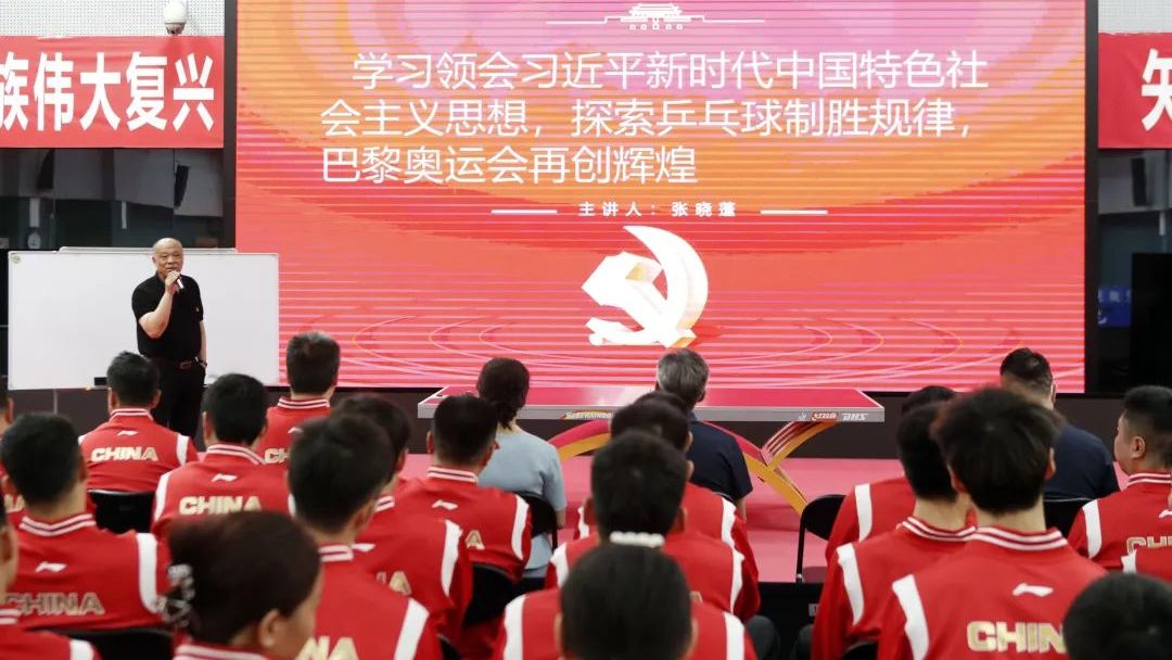 7月12日,中国乒协党支部和国家乒乓球队党支部在位于体育总局训练局的国家乒乓球队训练馆共同开展主题党课。体育总局乒羽中心党委委员、纪委书记,中国乒乓球协会副主席张晓蓬以《学习领会习近平新时代中国特色社会主义思想,探索乒乓球制胜规律,巴黎奥运会再创辉煌》为题讲授主题党课。