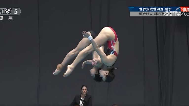 7月22日,福冈游泳世锦赛进入了第九个比赛日,当日迎来了跳水比赛中第十二个决赛项目的冠军争夺战。在混双3米板决赛中,朱子锋/林珊整体发挥稳健,六跳均位列榜首,越跳越好,尤其是在第五跳5152B表现突出,单跳拿到了全场最高分78.30分。两人最终以总分326.10分锁定金牌,成功卫冕,为中国跳水队斩获本届世锦赛的第十二金,也是中国队收获的第十五金。澳大利亚组合以307.38分获得亚军,意大利组合以294.12分拿到季军。