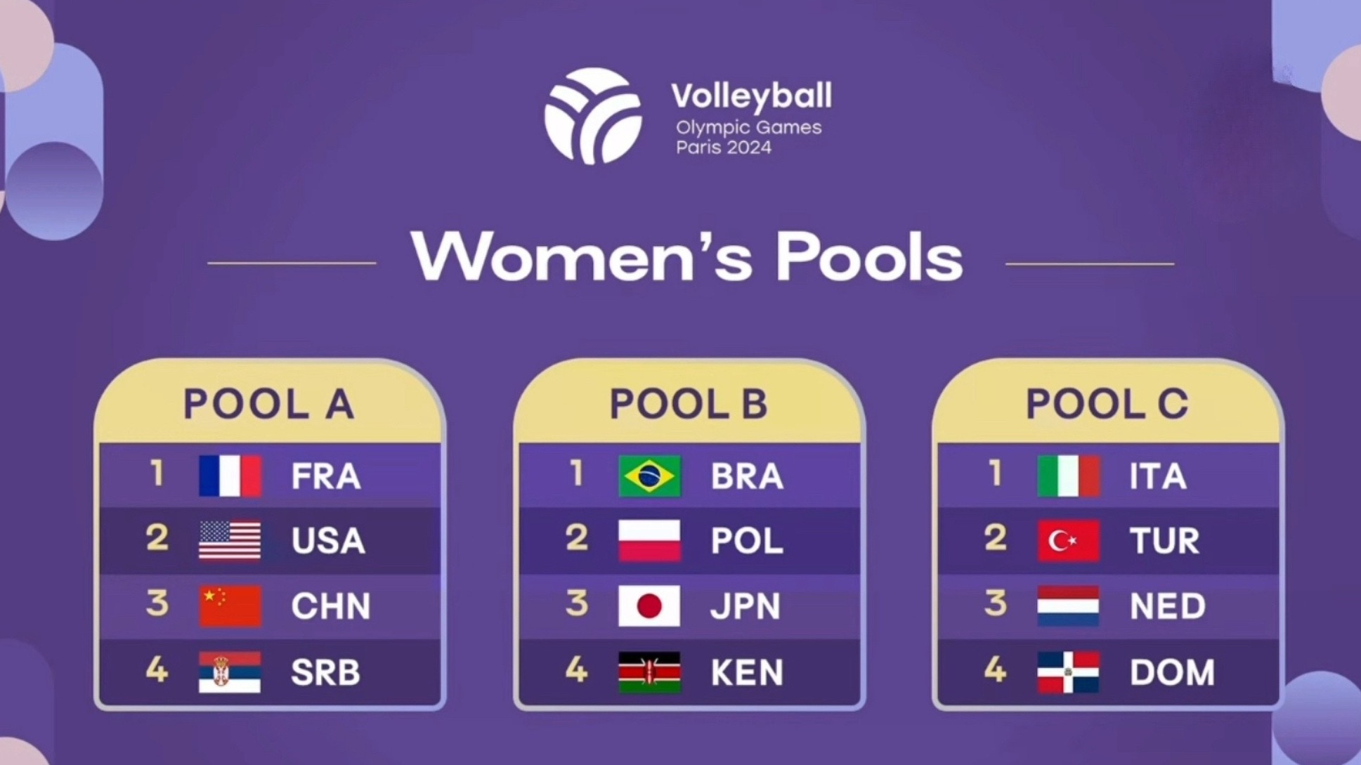 根据规则,本次奥运会排球项目的12支参赛队共分为四个档次,其中第一档球队包括法国、巴西、意大利,第2档共有土耳其、波兰、美国。中国、日本和荷兰分在第3档,第4档包括塞尔维亚、多米尼加和肯尼亚。