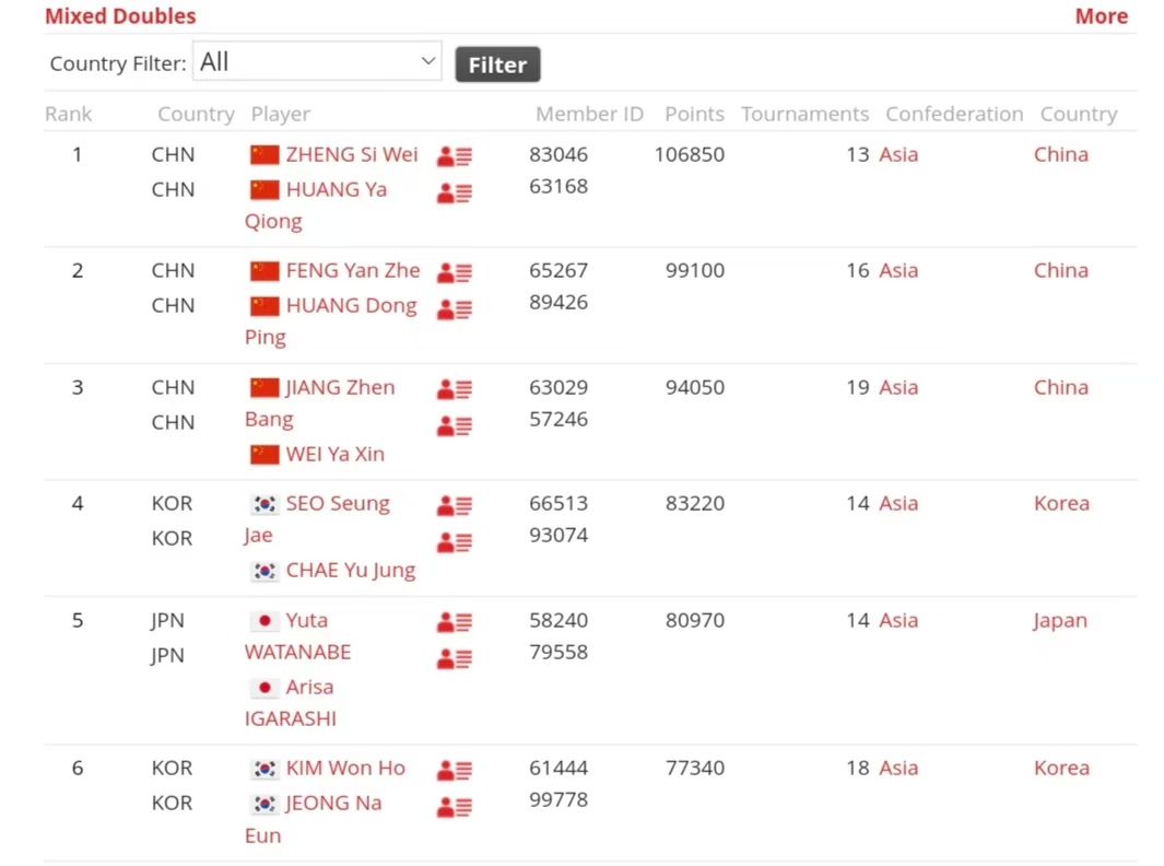 混双方面,中国队4对组合出场,取得3胜1负。2号种子林祥毅/刘圆圆21比3、21比14击败马来西亚组合陈梓阳/阿琪翋,4号种子李泓毅/张佳晗以两个21比7轻取秘鲁选手法布里奇奥/瓦莱里,王子恒/曹梓涵21比8、21比12击败菲律宾组合拉努扎/黛安。中国队唯一一场失利是屠懿宸/谭可萱,他们以两个16比21负于印尼组合阿德里亚/克莱琳。