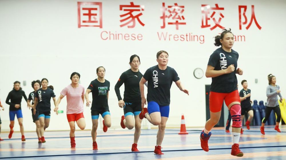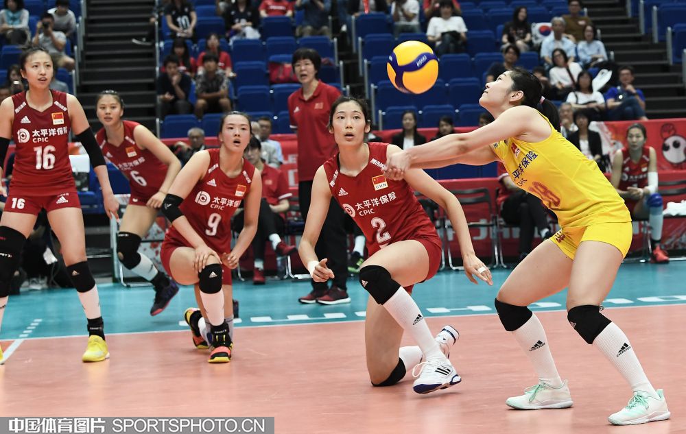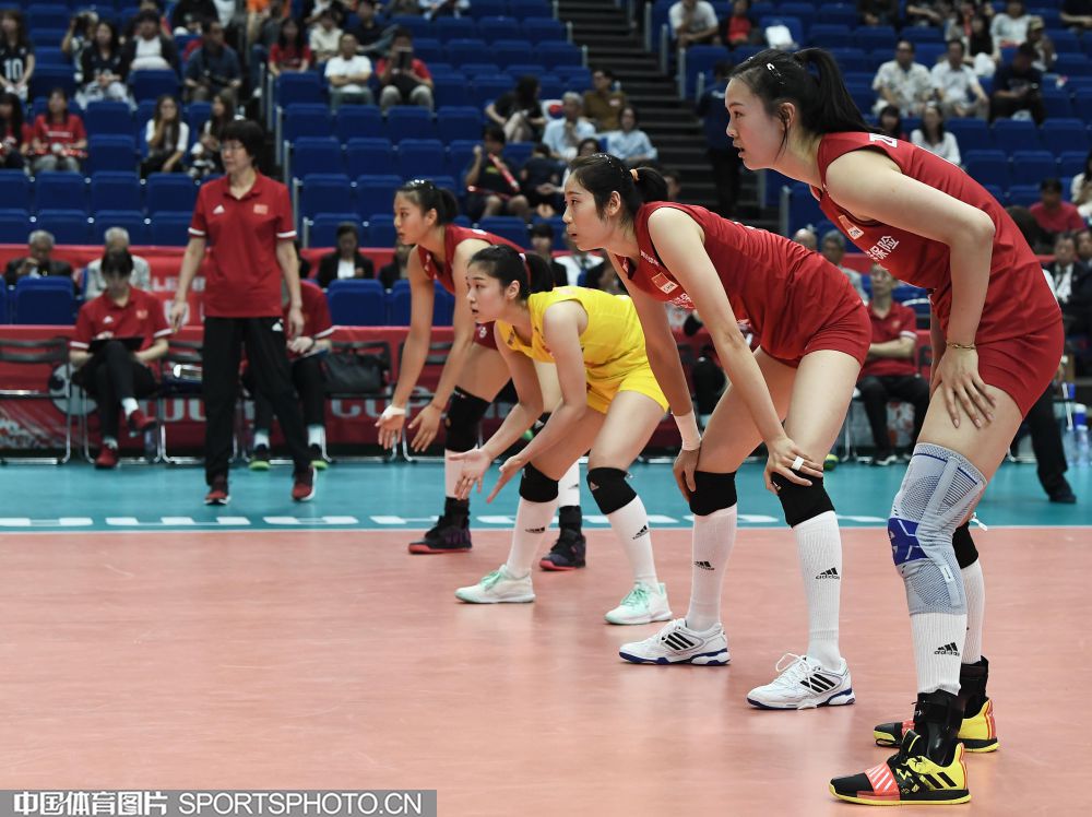 9月14日,2019女排世界杯在日本开始第一阶段小组赛。在首轮对阵韩国队的比赛中,中国队(红衣)以3:0(25:21、25:15、25:14)战胜韩国队(白衣),取得开门红。图为中国队队员严阵以待(右一为张常宁、右二为朱婷)。