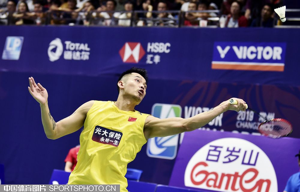 9月17日,2019中国羽毛球公开赛在江苏常州奥体中心体育馆开赛。男单首轮中,中国老将林丹0比2不敌日本选手桃田贤斗,无缘次轮。图为林丹在比赛中。