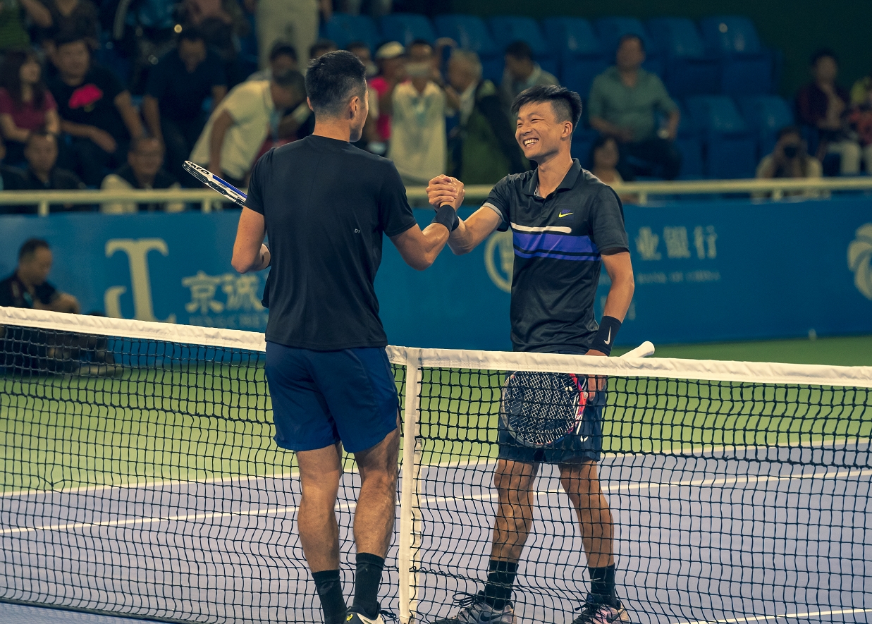 9月20日晚,2019年中国(京山)绿林网球英雄会中国男子网球冠军争霸赛巅峰对决在二位国家队明星队员吴迪和李喆之间展开。在观众呐喊助威声中,李喆、吴迪获分别得冠军亚军。2019年中国(京山)绿林网球英雄会中国男子网球冠军争霸赛由中国网球协会、湖北省体育总会、湖北省网球协会联合主办,京山市人民政府、京山市网球协会承办。摄影:杨铎