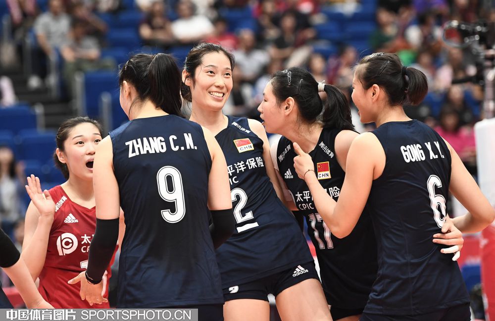 2019年女排世界杯赛第一阶段A组循环赛比赛中,中国队以3比0战胜喀麦隆队获得本届世界杯两连胜。(中国体育图片 刘亚茹 摄)