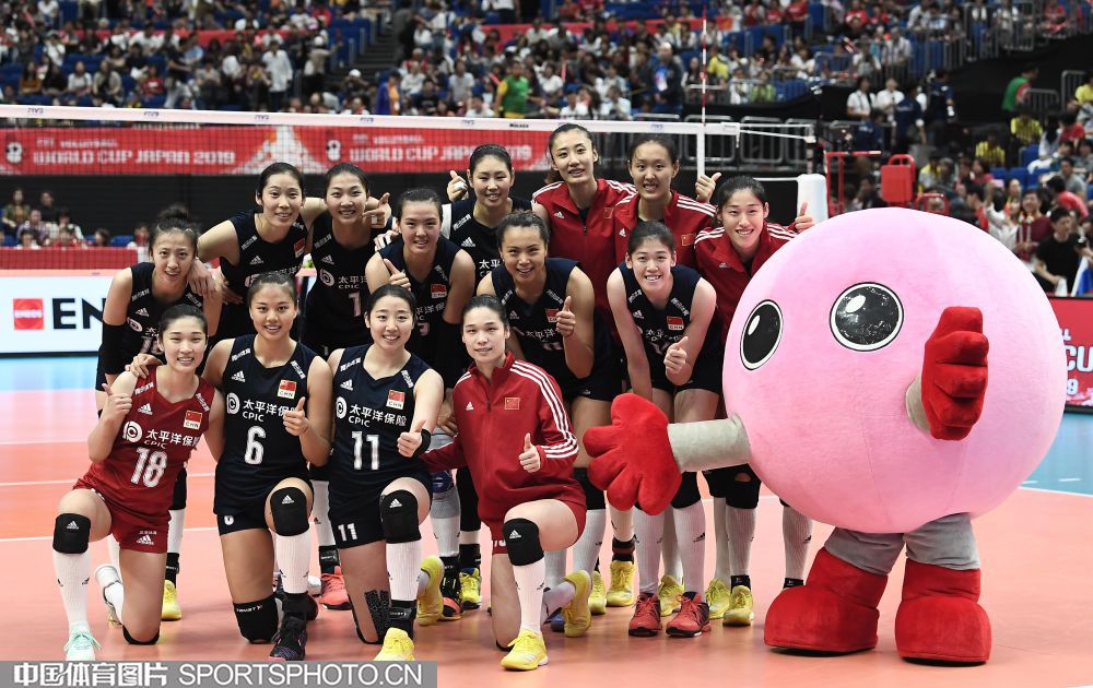 2019年女排世界杯赛第三阶段A组循环赛中,中国队以3比0战胜塞尔维亚队获得本届世界杯十连胜,提前夺冠。(中国体育图片 刘亚茹 摄)