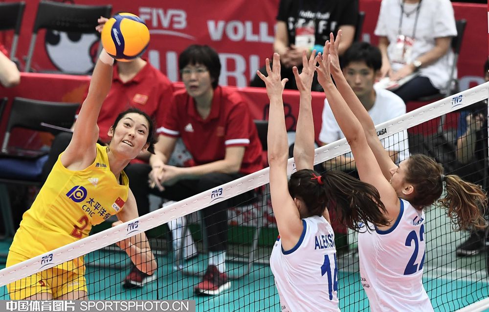 2019年女排世界杯赛第一阶段A组循环赛比赛中,中国队以3比0战胜俄罗斯队获得本届世界杯三连胜。(中国体育图片 刘亚茹 摄)