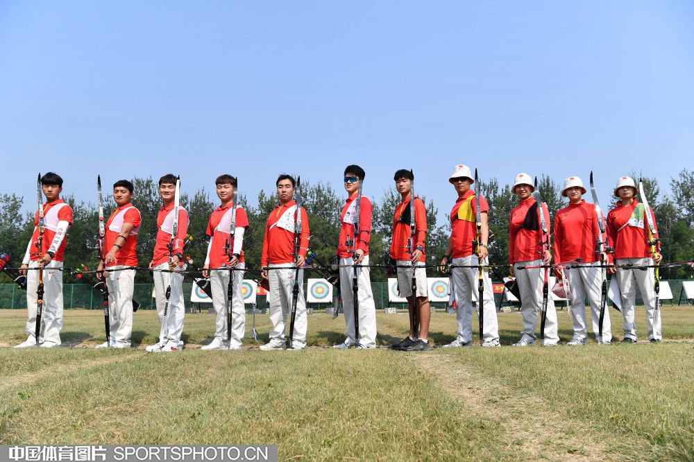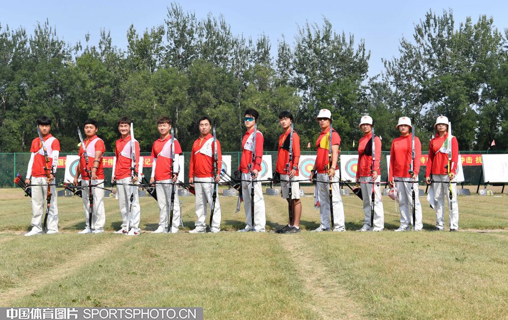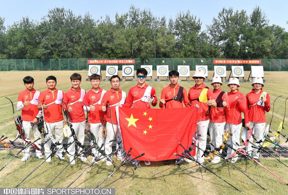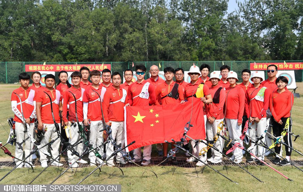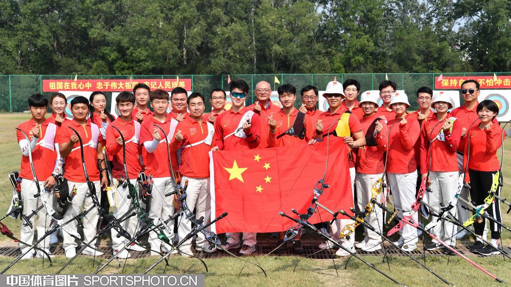 为祖国庆生 中国射箭队全体队员与五星红旗合影