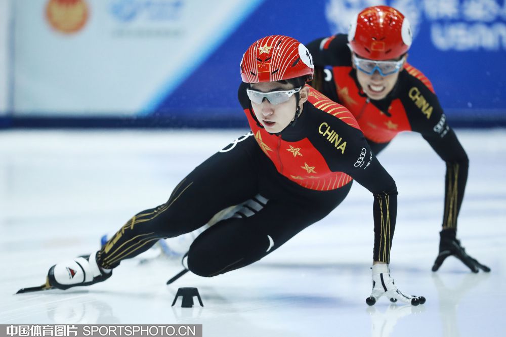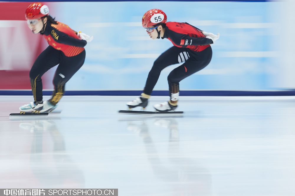 10月9日,“泰山体育杯”短道速滑国家队直通国际比赛选拔赛总决赛在北京首钢园短道速滑馆收官。当日进行了男、女1000米、3000米和女子3000米、男子5000米接力项目的决赛。图为曲春雨在女子1000米决赛中。(鹿麟 摄)