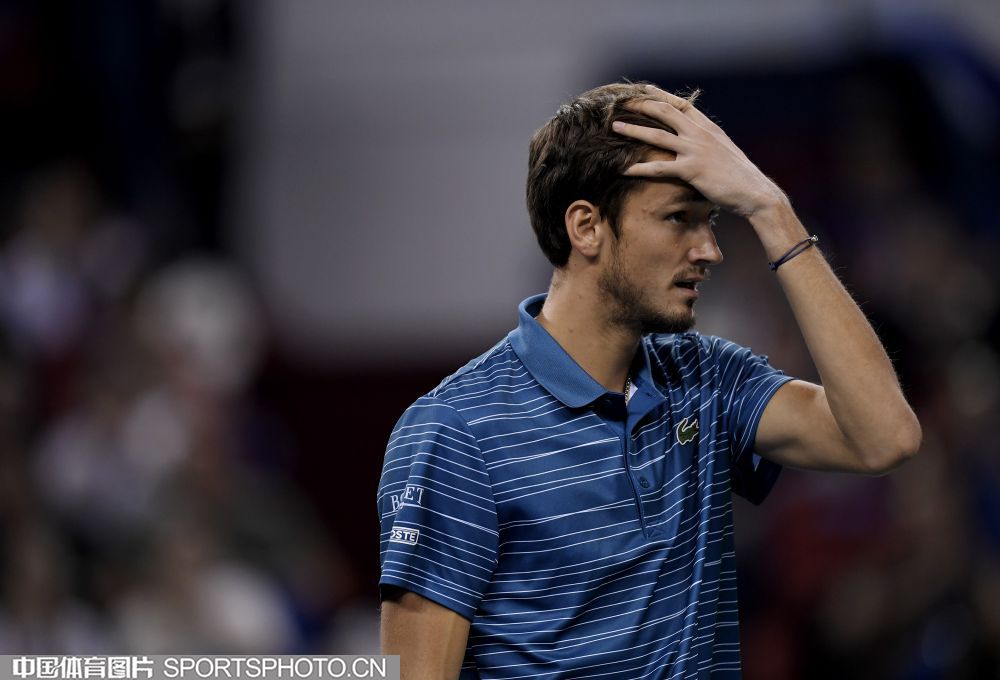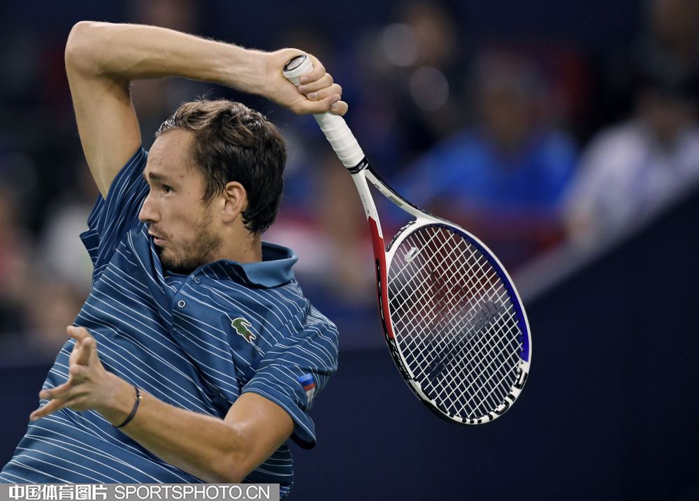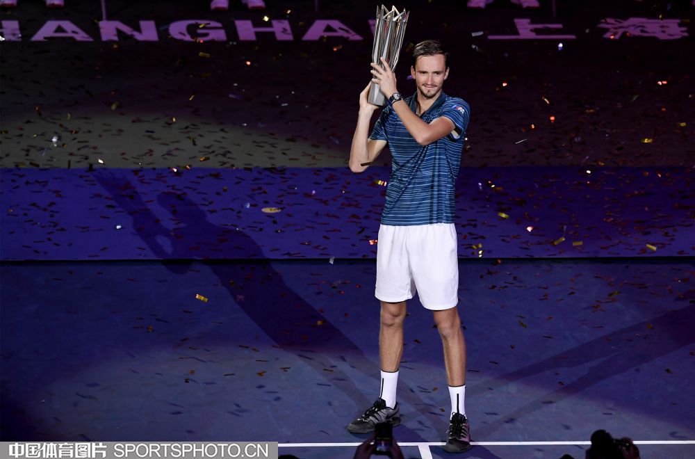2019年10月13日,2019年上海网球大师赛落幕。在单打决赛中,俄罗斯选手梅德维德夫以2比0战胜德国选手小兹维列夫,夺得冠军。图为梅德维德夫。(倪敏哲 摄)