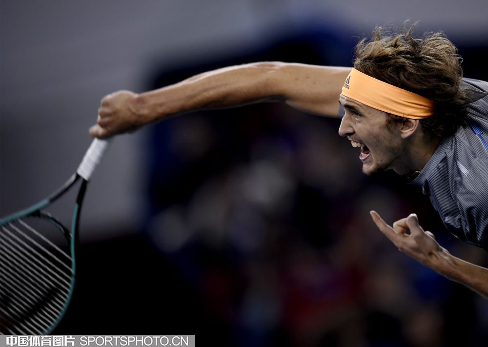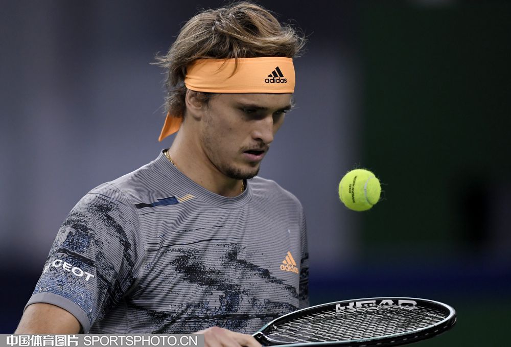 2019年10月13日,2019年上海网球大师赛落幕。在单打决赛中,俄罗斯选手梅德维德夫以2比0战胜德国选手小兹维列夫,夺得冠军。图为小兹维列夫。(倪敏哲 摄)