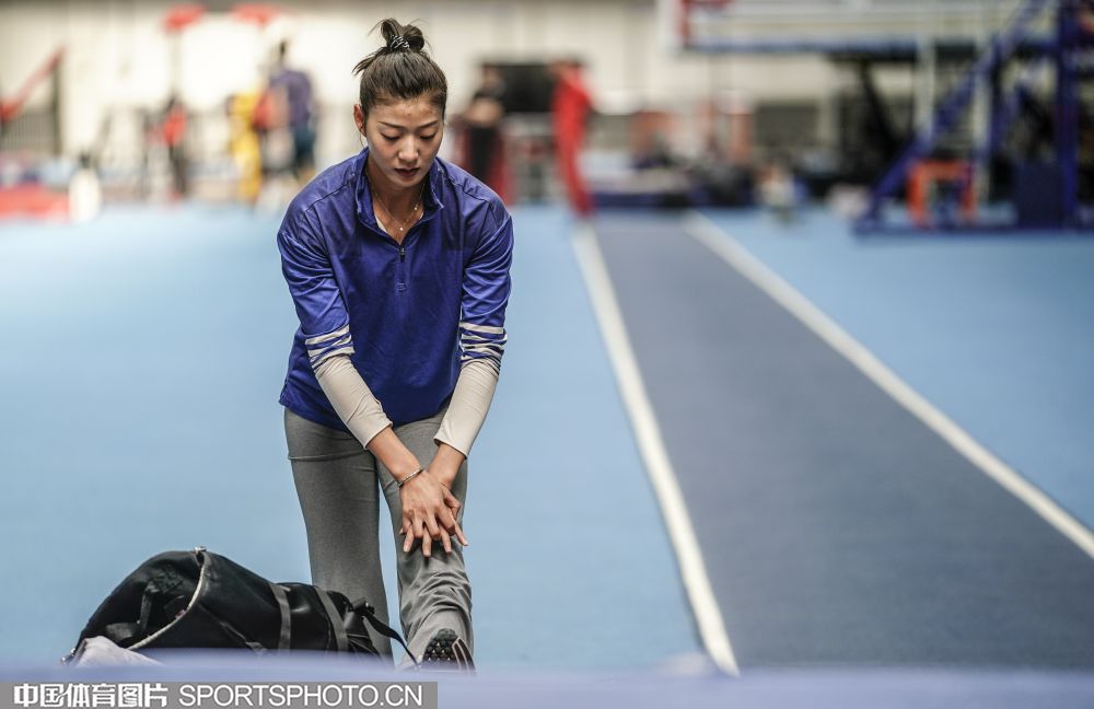2019年10月28日,中国田径队部分队员在国家体育总局训练局田径馆进行训练。在本月初结束了多哈世锦赛后,中国田径队队员返回国内进行调整,备战2020东京奥运会。图为徐惠琴。(魏征 摄)