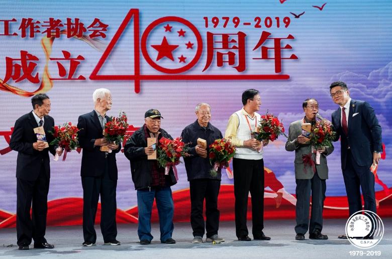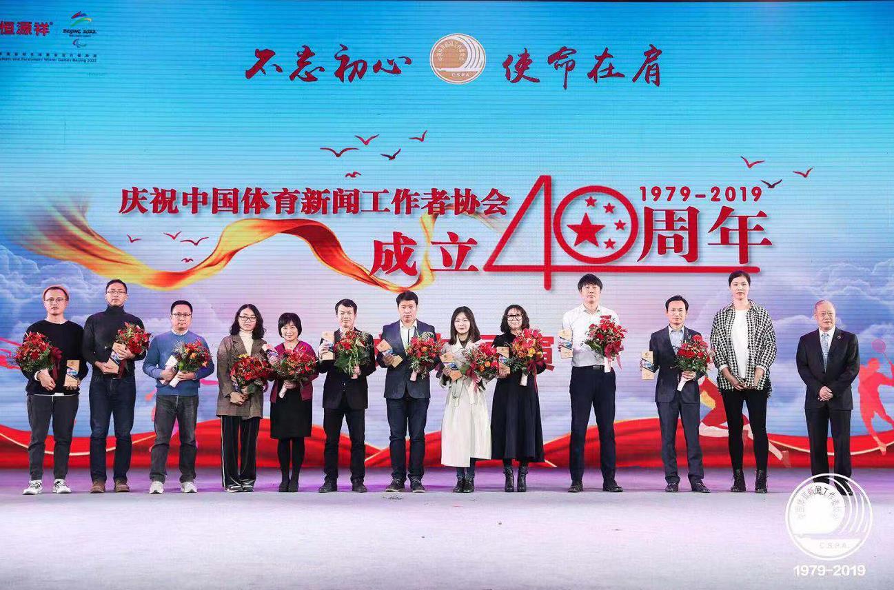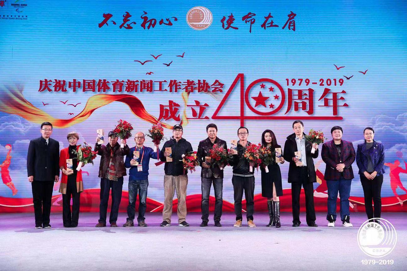 11月21日,庆祝中国体育新闻工作者协会成立40周年纪念活动在北京体育大学举行,活动为从事体育新闻工作20年以上、30年以上、40年以上的代表和新兴媒体代表颁奖。图为活动现场。
