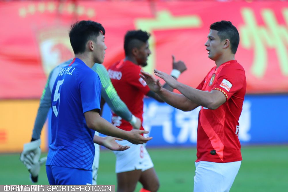 12月1日,在广州天河体育场进行的2019赛季中国足球协会超级联赛第30轮比赛中,广州恒大淘宝队主场以3比0战胜上海绿地申花队,第八次夺得中超冠军。图为双方球员相互致意。(中国体育图片 常州 摄)