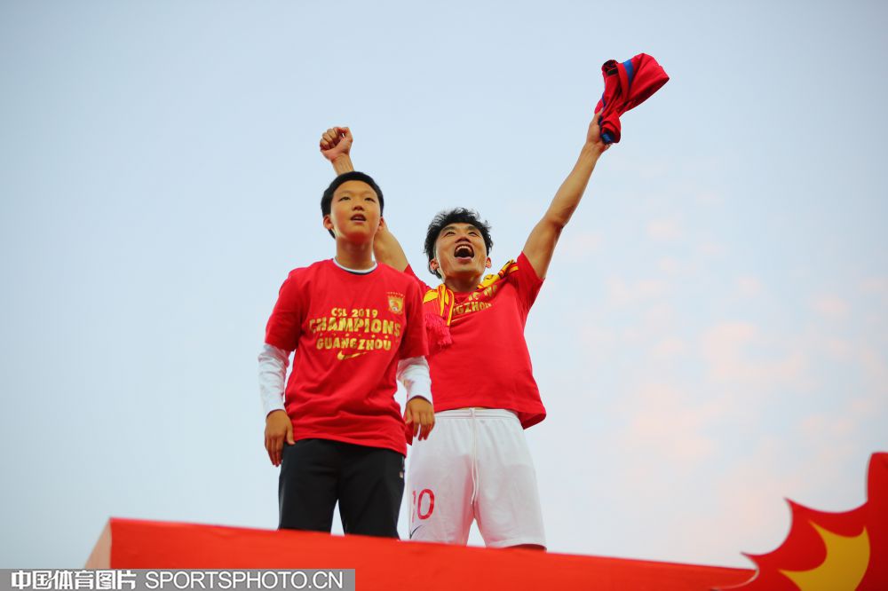 12月1日,在广州天河体育场进行的2019赛季中国足球协会超级联赛第30轮比赛中,广州恒大淘宝队主场以3比0战胜上海绿地申花队,第八次夺得中超冠军。图为郑智在夺冠庆祝彩车巡游中。(中国体育图片 常州 摄)