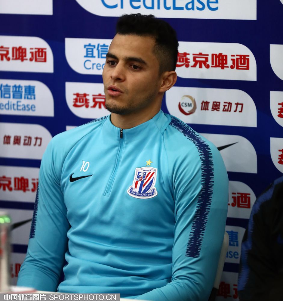 2019年中国足球协会杯决赛次回合将于12月6日打响,决战双方上海绿地申花和山东鲁能泰山5日分别在上海虹口足球场举行赛前新闻发布会并进行踩场训练。图为上海申花队外援莫雷诺。(中国体育图片 王宪民 摄)