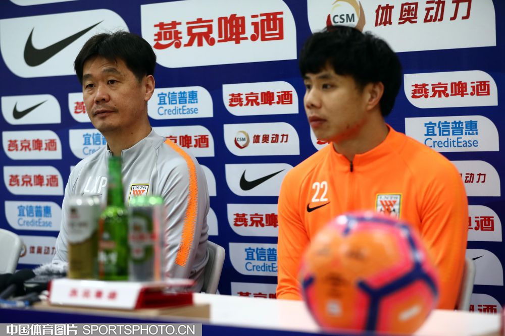 2019年中国足球协会杯决赛次回合将于12月6日打响,决战双方上海绿地申花和山东鲁能泰山5日分别在上海虹口足球场举行赛前新闻发布会并进行踩场训练。图为山东鲁能队主教练李霄鹏(左)与队长蒿俊闵。(中国体育图片 王宪民 摄)