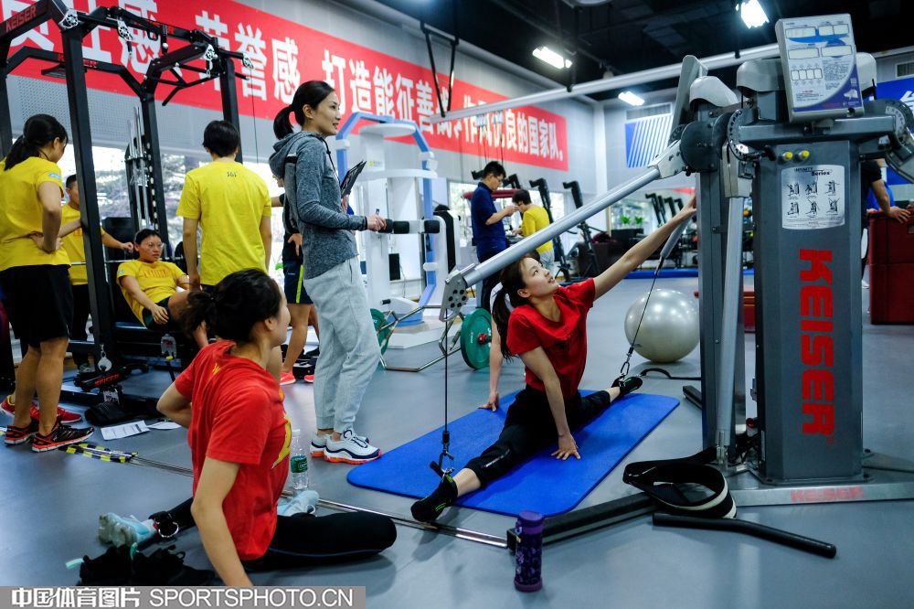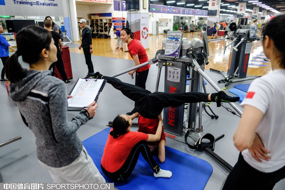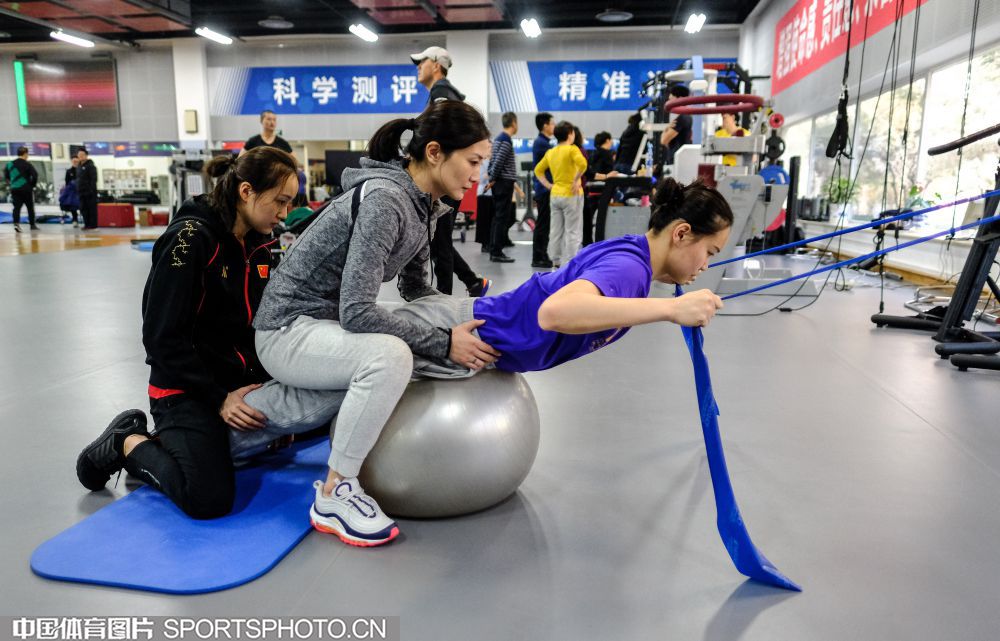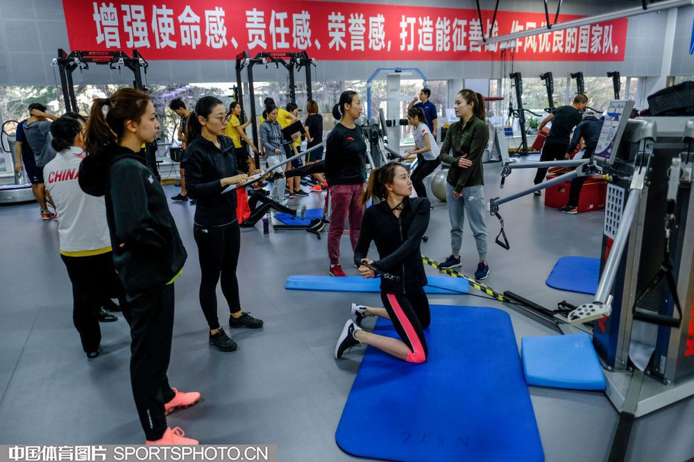 2019年12月9日,正在北京冬训的国家花样游泳队在国家体育总局训练局体能训练馆内进行科学有效富有针对性的体能训练,备战东京奥运会。(中国体育图片 安灵均 摄)