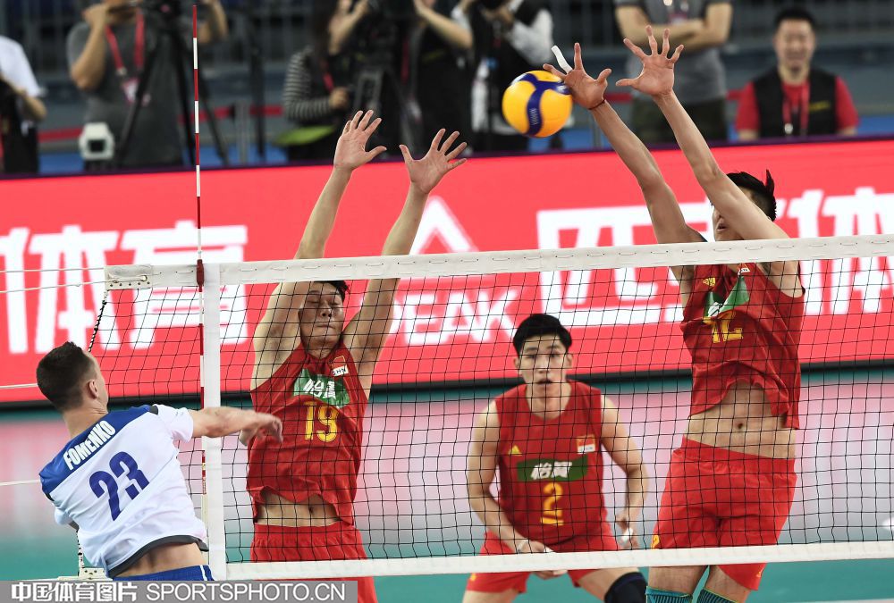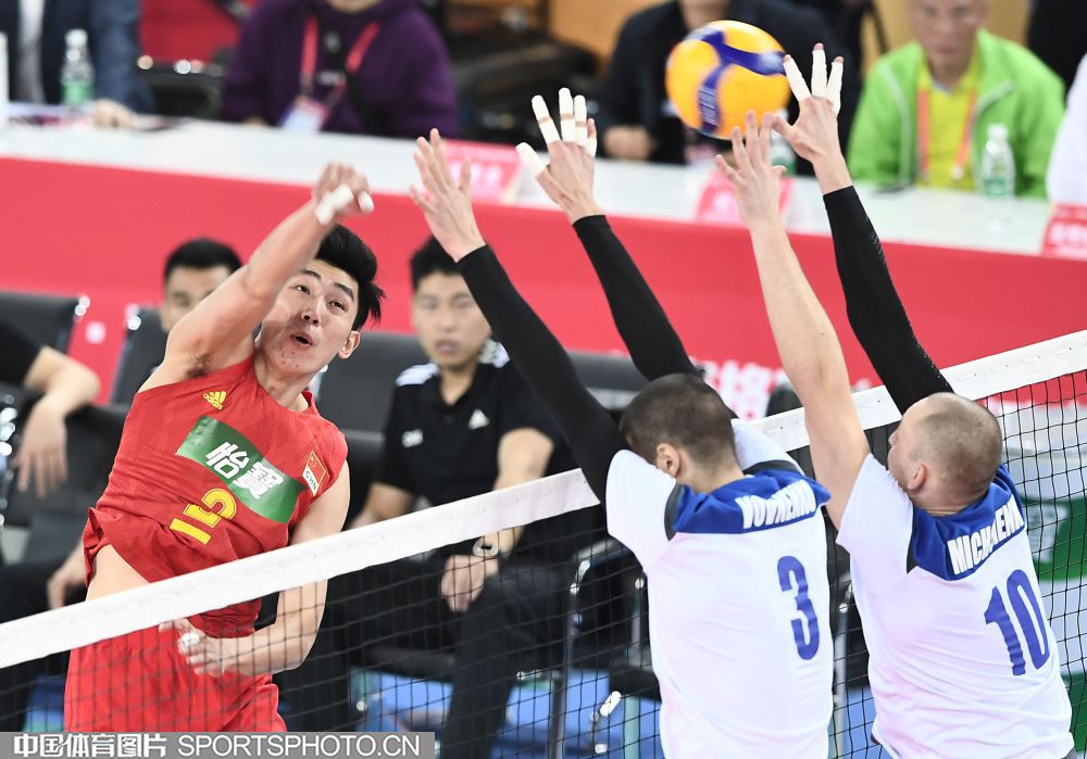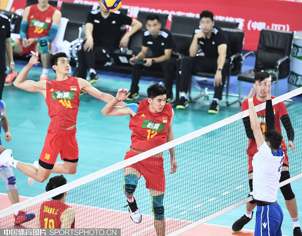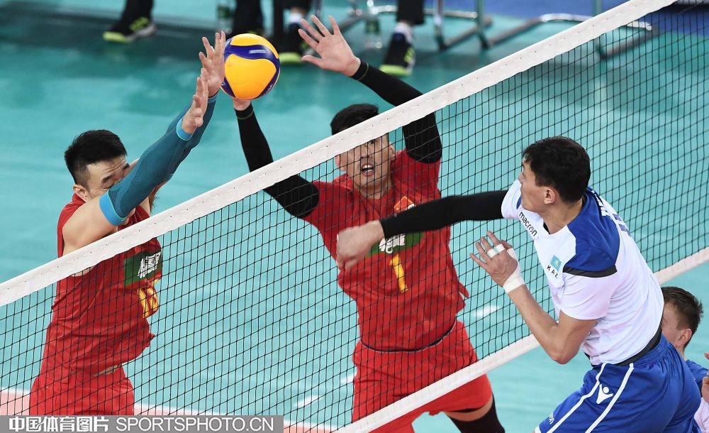 东京奥运会男排亚洲区资格赛1月7日在广东江门打响,首轮比赛东道主中国男排3比0完胜哈萨克斯坦队,赢得开门红。图为比赛现场。(中国体育图片 刘亚茹 摄)