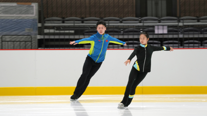 9月28日,中国花样滑冰队在首钢冬训中心花样滑冰馆举行了媒体公开课。韩聪、彭程/金杨等运动员参加了训练,韩聪的搭档隋文静因仍在伤愈恢复期,缺席了今日训练。加拿大著名花滑编舞劳瑞·妮可也亮相了本次训练,针对运动员们训练中的问题在场边进行了指导。