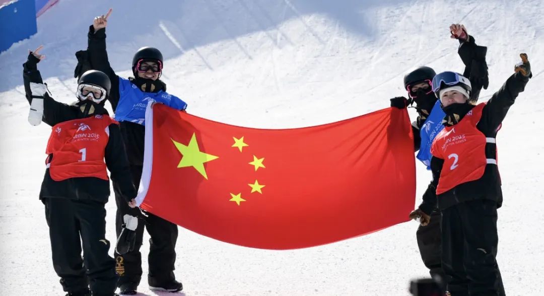 对着镜头示意队服上的国旗,赛后大家手拿五星红旗共同喊道:“中国队,加油!”2月10日,哈尔滨亚冬会自由式滑雪空中技巧混合团体决赛,徐梦桃、齐广璞、李心鹏三人组成的中国队以305.64分夺得冠军,领先第二名哈萨克斯坦队多达70.25分,展现了这支雪上“王者之师”的硬实力。而徐梦桃、齐广璞、李心鹏三人之间彼此信任、相互配合,更是展现了这支队伍强大的团队凝聚力。