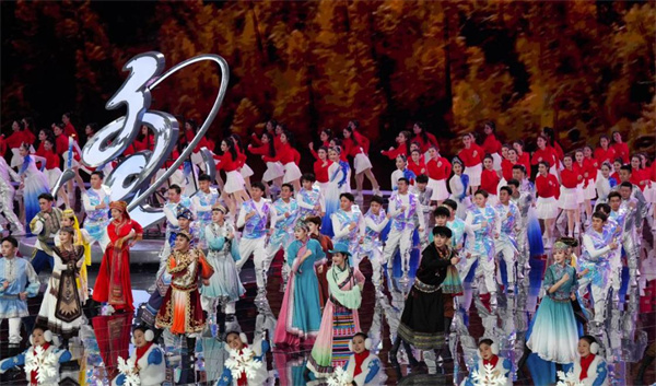 闭幕式上还进行了精彩的文体展演,通过四个节目分别展现了内蒙古的北疆文化和亮丽风景,歌颂为大会成功举办发挥至关重要作用的志愿者和赛事服务保障人员,并再度演绎了“十四冬”主题曲《新的起点》。各参赛代表团、志愿者和媒体记者代表共600余人共同唱响《我和草原有个约定》,以表达收获、感谢和邀约,为“十四冬”划上圆满句号。
